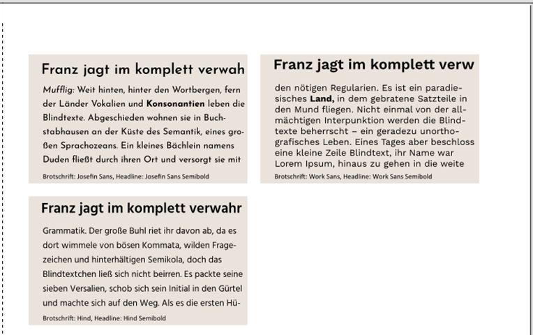 Ich variiere auch die Grundschriften je nach Thema und Textmenge, nicht nur die Überschriften.