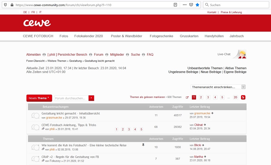 auf cewe.de ist das deutsche Forum eingebunden - https://www.cewe-community.com/forum/ofs/ Sylke Re: Ist das Forum bei euch auch so?Hallo Sylke,