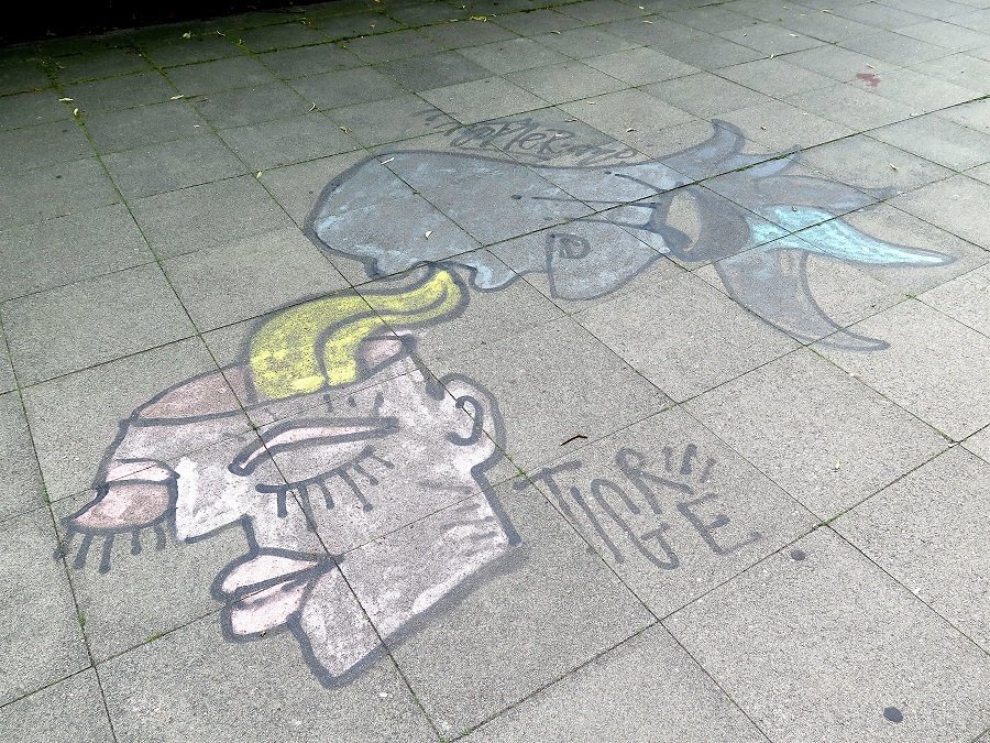 Und noch einmal Straßenkunst. Was sie uns sagen will? Keine Ahnung. Für mich könnte sie weg. Aber Kunst liegt halt im Auge des Betrachters. D:roll: