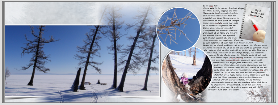 Re: 05. Dezember | Kategorie: KreativesHeute und morgen kann ich gleich zwei Fliegen mit einer Klappe schlagen, weiter an meinem aktuellen Reise-Jahrbuch arbeiten und fertige Seiten hier einstellen.