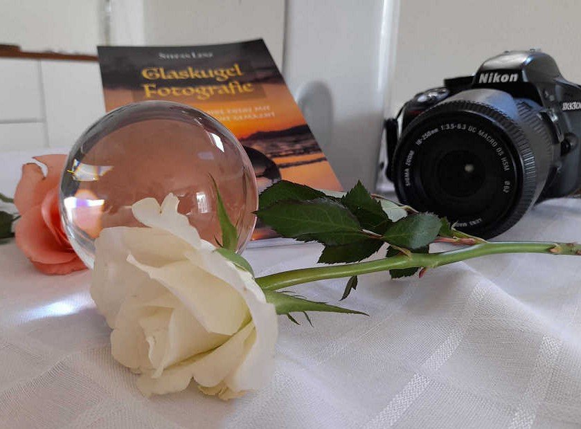 Glaskugel und Anleitungsbuch liegen schon bereit. Mal schauen, was man mit einer Blüte so anstellen kann.