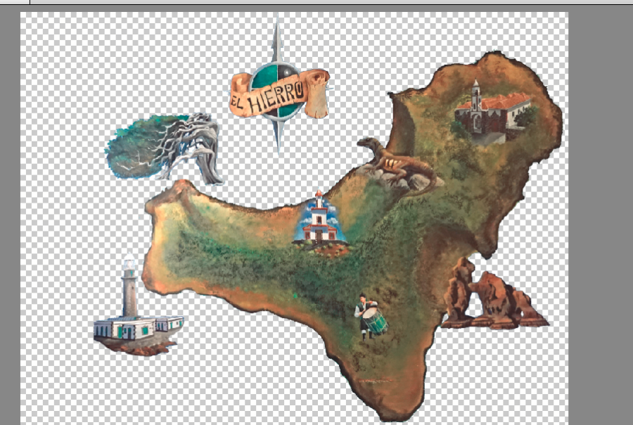 das große Foto ist leider so "abgeschnitten", weil ich ansonsten noch einen Zaun drauf gehabt hätte. Und zu sehr zoomen kann ich nicht, sonst geht mir meine Wolke über der Cumbre verloren. Das Emblem ist die Insel, es ist ein einziges Foto, von daher kann ich die einzelnen Komponenten nicht neu anordnen. Ich werde aber die Nadel verkleinern und ggf rot machen, damit mir die Echse in der Karte nicht zu sehr verdeckt wird. Die Karte habe ich in einem Lokal fotografiert, war ein Wandgemälde mit den für El Hierro typischen Dingen. Re: Bessere Ideen?Hallo Reisetante,