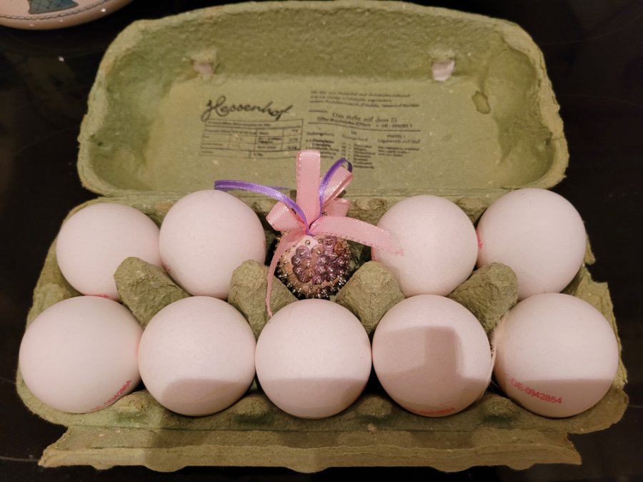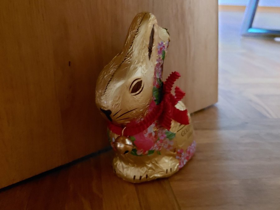 Re: Frühlingsspecial Nr. 3. Top Secret - Die OstereierspionageBei uns fiel das Eiersuchen im Garten heute auch wegen des schlechten Wetters aus, da mussten wir den Osterhasen zum Eierverstecken ins Haus lassen. Die Verstecke waren leider nur schlecht zu fotografieren, hinter Büchern und Sofakissen lugte nichts heraus, aber hinterm Schrank habe ich etwas gefunden.