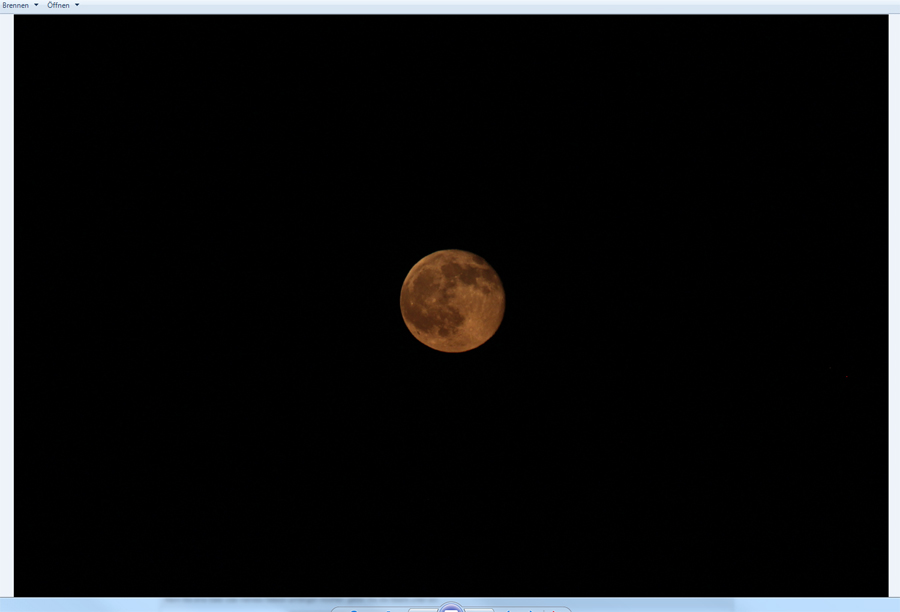 Ich schreibe die Werte immer von den Daten ab, die ich bei "Eigenschaften" meiner Fotos finde. Die Aufnahme wurde mit einem Canon 70-300 gemacht. Ich habe mir noch nie Gedanken über eine Umrechnung von Werten gemacht, da ich mich hier überhaupt nicht auskenne.Anläßlich deiner Tele-Aufnahme vom "Moskauer Mond" stellt sich einmal mehr die Frage, ob es sich um einen Wert handelt, der den sogenannten Crop-Faktor bereits berücksichtigt. Seitdem bei den meisten Digitalkameras die Sensorgröße erheblich vom Kleinbildformat (24 mm x 36 mm) abweicht, ist das "Gefühl für die Brennweite" ein wenig verloren gegangen. Bei deiner Canon 500D beträgt der Crop-Faktor 1,6x , so dass wir es vielleicht mit einem klassischen Tele von immerhin schon 480 mm (=300 mm x 1,6) zu tun haben. In den Exif-Daten ist meist zusätzlich auch die auf Kleinbildformat umgerechnete Brennweite gelistet. Das ist der Wert, den ich immer verwende. :) Das Mond-Foto ist natürlich ein wenig ausgeschnitten und aufgehellt, das Foto vom unbearbeiteten Original habe ich auch angehängt.... Liebe Grüße