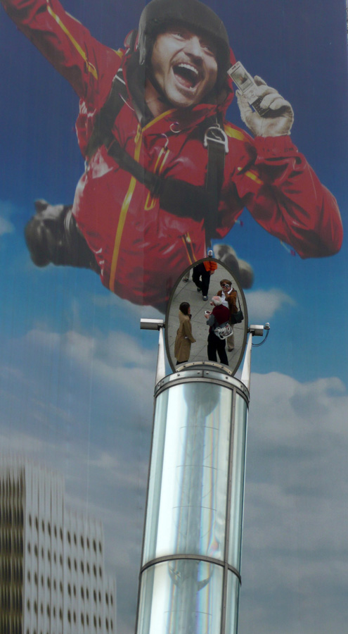 Erst wollte ich einen Humorpunkt kassieren und ein Spiegel-Ei einstellen, aber ich lasse mich nicht lumpen und interpretiere das Thema mit meiner eigenen Spiegelei vom Potsdamer Platz in Berlin (und hoffe, dass dies den Teilnahmebedingungen nicht widerspricht). Mich hat das riesige Werbeplakat hinter der Röhre mit Spiegel und eigenem Abbild fasziniert. Der Spiegel lenkt natürliches Licht bis zu den Bahnsteigen im Untergrund. Lieber Gruß, pitty
