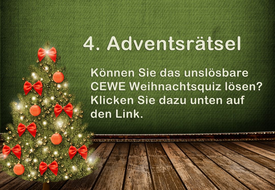 Wir laden Sie herzlich ein, die neue CEWE Community mit integriertem Forum zu entdecken und künftig zu nutzen. Das bisherige Forum, in dem Sie sich gerade befinden, steht nur noch bis Ende 2025 für neue Beiträge zur Verfügung und wird ab dem kommenden Jahr 2026 nur noch lesend zugänglich sein. Informieren und registrieren Sie sich jetzt in der neuen CEWE Community – wir freuen uns auf Sie! Rätsel 2014: Advent, Advent das vierte Lichtlein brennt.