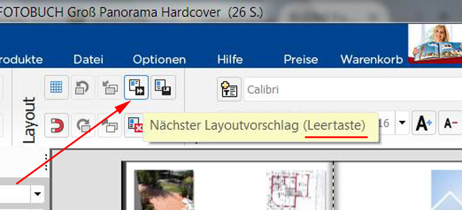 Re: myphotos - SpeicheroptionenBei mir verhält es sich auch so, dass die Leertaste den nächsten Layoutvorschlag aufruft. Im Tooltipp wird auf die Leertaste hingewiesen.