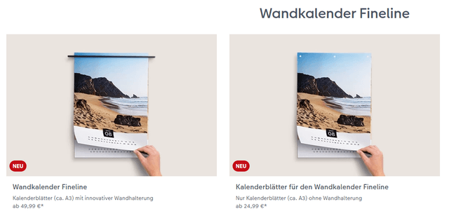 Den Wandkalender Fineline bieten wir zwar schon seit letzten Jahr an, jedoch ist er jetzt auch in der Software bestellbar und kann auch ohne die Wandhalterung bestellt werden.