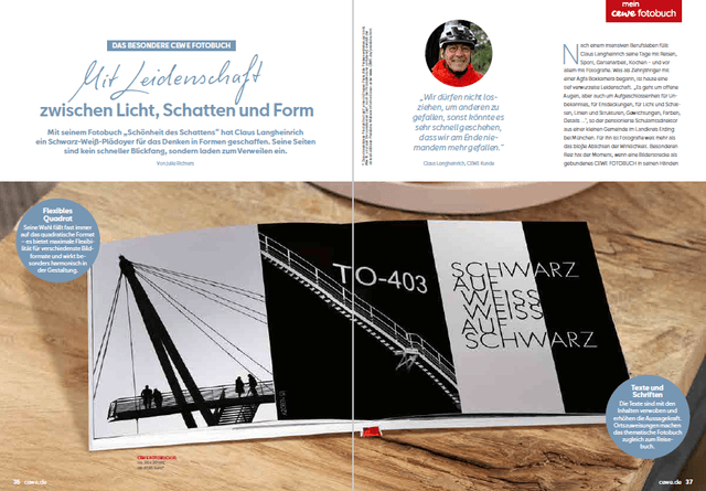 Das besondere CEWE FOTOBUCH "Schönheit des Schattens", mit wunderschönen Schwarz-Weiß-Aufnahmen und Tipps zur Gestaltung von Claus Langheinrich findet Ihr hier.