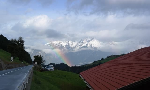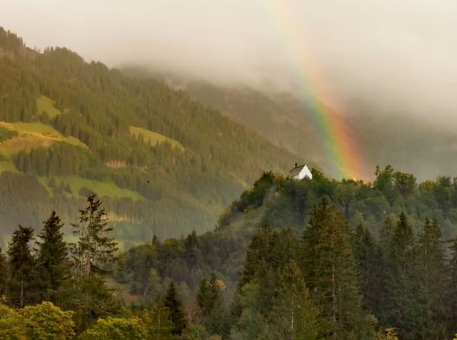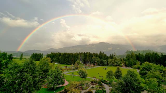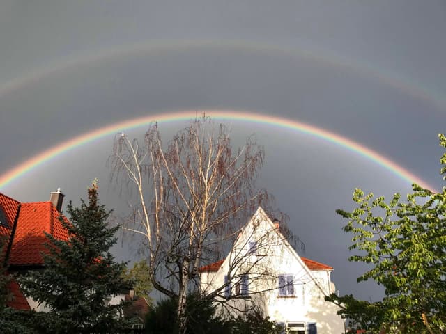 Ich musste leider auch im Archiv kramen, um ein Regenbogenbild zu finden. Hier zwei Fotos aus unserem Urlaub in Fischen von September 2021. Also immerhin Herbst.