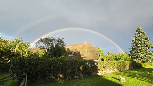 Regenbogen auf Rügen in Neuendorf, Ortsteil von Putbus. Aufgenommen im September 2025.Aufgenommen mit Handy, Samsung S24 Ultra.