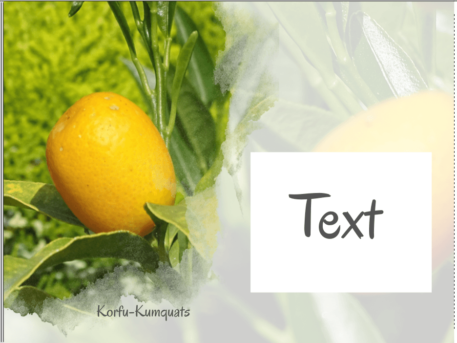 Variante 1: Bild einer Kumquat, einer Frucht, die auf Korfu viel angebaut wird und im Textfeld einen kurzen Rückblick auf die Reise?