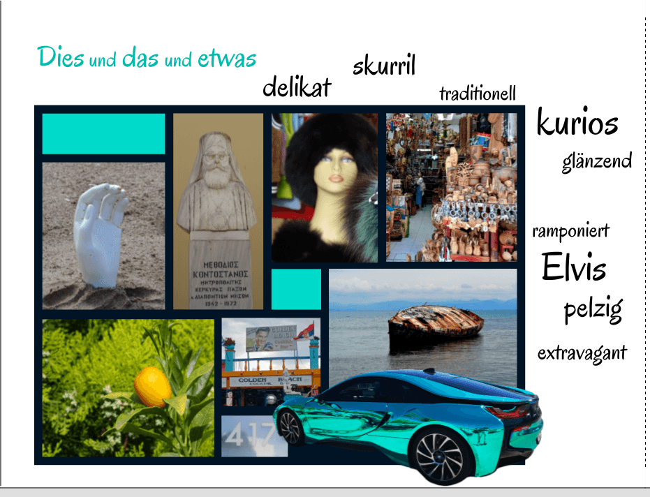 Variante 2: Fotos, die im Buch keinen Platz haben. Und wie soll ich die Wörter anordnen? Ungeordnet, geordnet oder ganz weg?