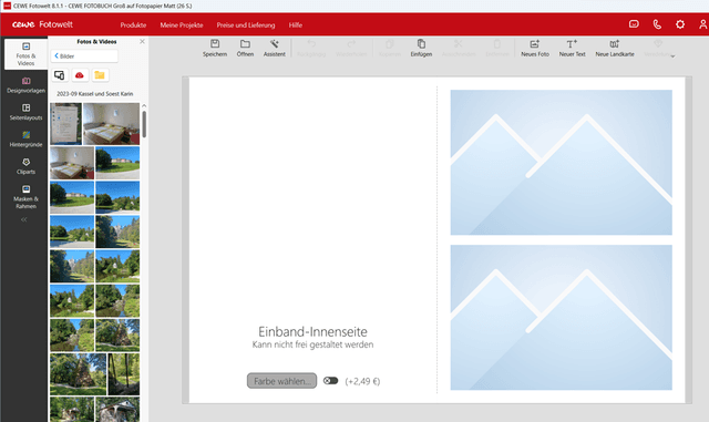 Lade ich mein bestehendes Projekt direkt mit der Fotowelt V 8.1.1, sieht die erste Seite inkl. Innenseite so aus: