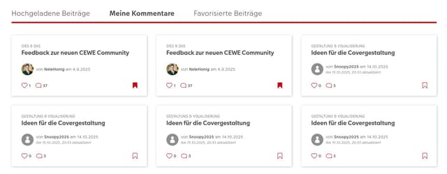 Kacheln in "Meine Kommentare":
