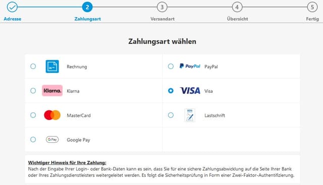 Dass ich per Vorkasse zahlen muss, ist mir bekannt; schade nur, dass man die verfügbaren Zahlungsarten nicht schon im Vorfeld sehen kann.