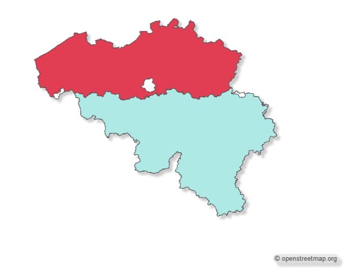 Ich habe nun erstmals versucht, die CEWE-Landkarten zu verwenden. Dabei ist mir aufgefallen, dass die Füllung nicht korrekt erfolgt. In der südwestlichen Ecke von Flandern (rot gefüllt) gibt es ein kleines Stück, das zu Wallonien gehört, aber nicht gefüllt wird. Analog dazu gibt es in der nordöstlichen Ecke von Wallonien (blau gefüllt) ein kleines Stück, das zu Flandern gehört, aber nicht gefüllt wird.