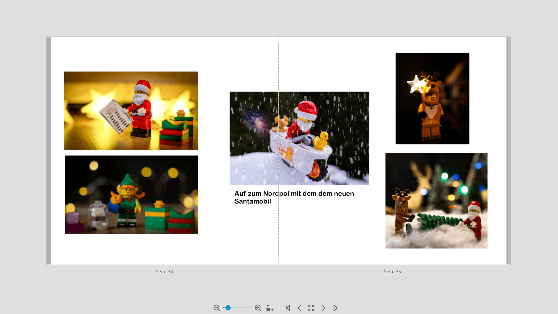 Ich persönlich würde alle Weihnachtsbilder zusammen in ein eigenes Kapitel packen (außer Dein Buch umfasst mehrere Jahre im Leben Deines Legomännchens, dann mehrere Kapitel. ). Ob das dann am Ende oder zwischenrein kommt, hängt von vom Erzählstrang des Buches ab. Das ist zumindest der Plan für mein Barbiepuppen-Buch, dass aber wegen Zeitmangel vermutlich erst fertig wird, wenn ich in Rente gehe.