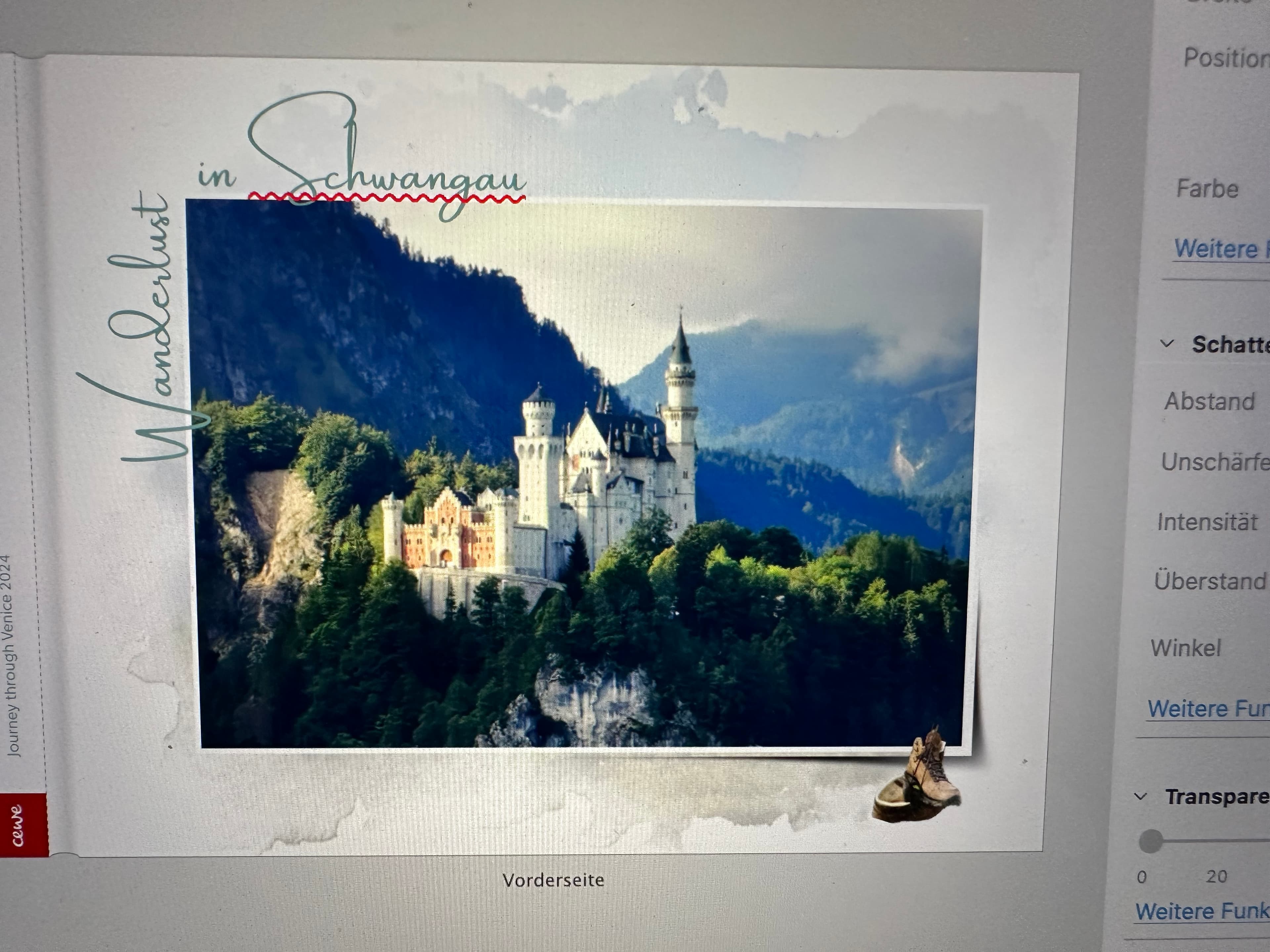 Hallo Gretchen, ich finde das Cover mit Rucksack und Schuhen auch richtig super. Am Handy kann ich nicht genau erkennen, ob die Schrift schwarz oder dunkelgrün ist, ich würde einen Grünton nehmen.