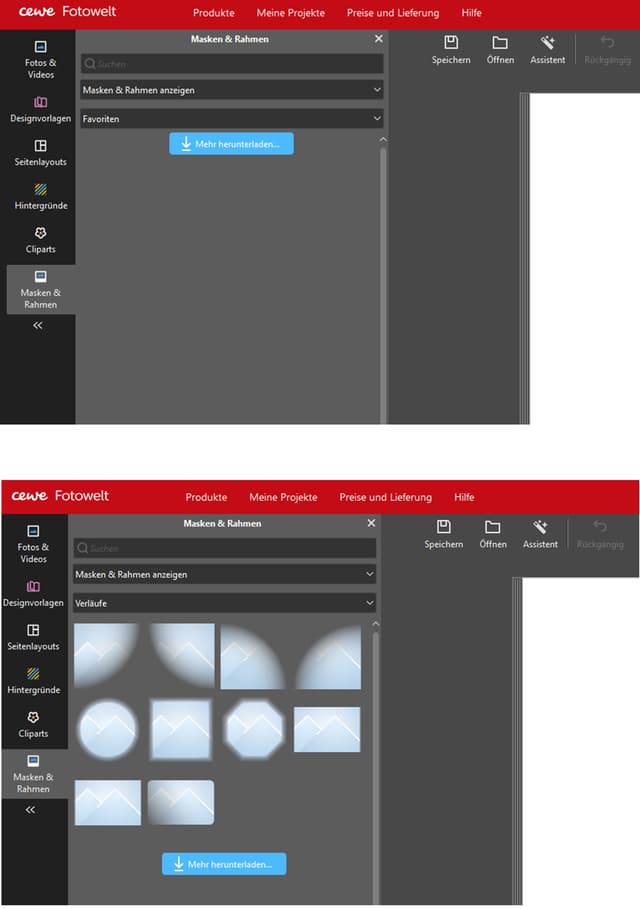 Wie verhält sich das mit Cliparts, Masken/Rahmen oder Hintergründen, die zwar bei A (Müller), aber nicht bei B (CEWE) und dort auch nicht (erneut) runtergeladen werden können, vorhanden sind? Werden diese automatisch übertragen oder kommt der Hinweis: Folgende Cliparts konnten nicht geladen werden ?